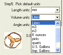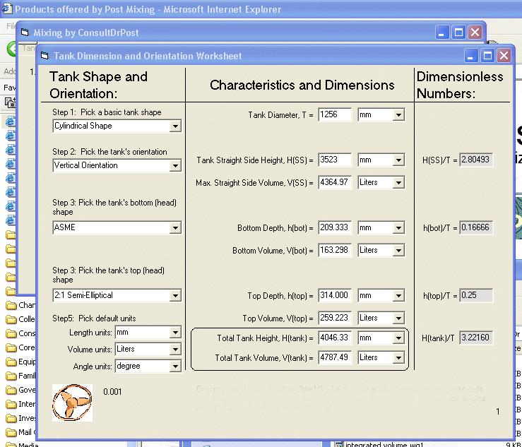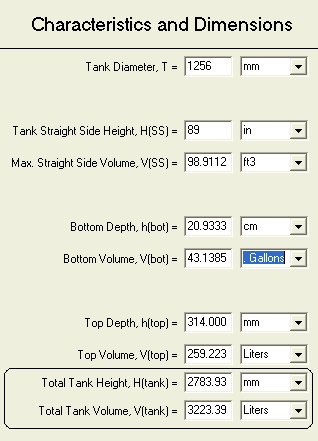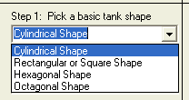 The window to the rightgives the total volume for the given tank. Some of the drop down menus are