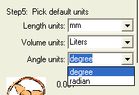 The angular units can be either degrees or radians. |