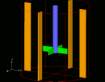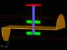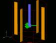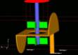 | Table 0: Overview description of equipment tested. Dimensions are in inches (mm). D: impeller diameter, h: blade height, w: blade width, OB: off-bottom distance, S: impeller spacing, L: length of Z-plate, DO: Orifice diameter, Z: liquid level, T: tank or pipe diameter. The general flow pattern in all figures is from right to left. CFD Model: The tan objects are stationary surfaces. The red object is the top of the T-pipe section. The shaft is blue and the impellers are green. The rotating reference frame tightly surrounds each impeller individually. The pipe and T are not shown. |