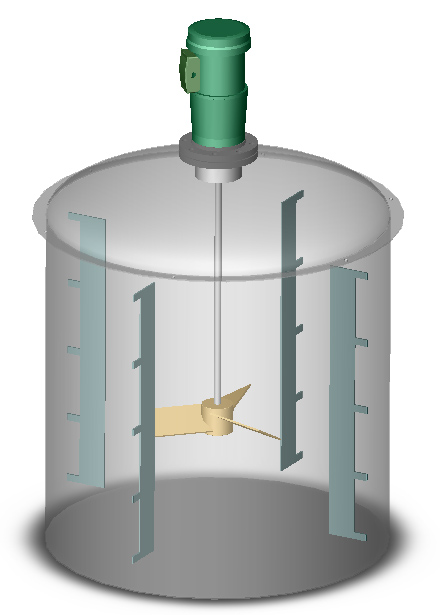 The axial impellers are 3-bladed, pitched bladed impellers at 30 degrees but