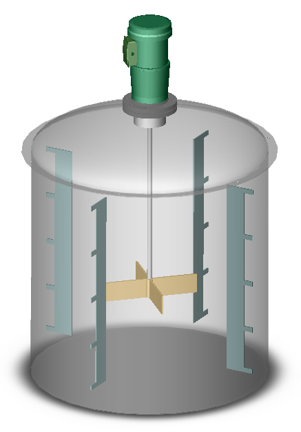 with one impeller at 2.5" (63.5 mm) off-bottom and a coverage of 2.5"