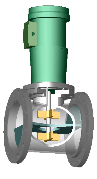 impeller is a down-pumper, while the lower impeller is an up-pumper. The outlet
