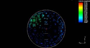 pattern for 1100 GPM (250 m3/hr) directly after the flow straighteners in the