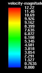 is seen at the tip of the impeller blades (tip speed). Dark blue is always zero.